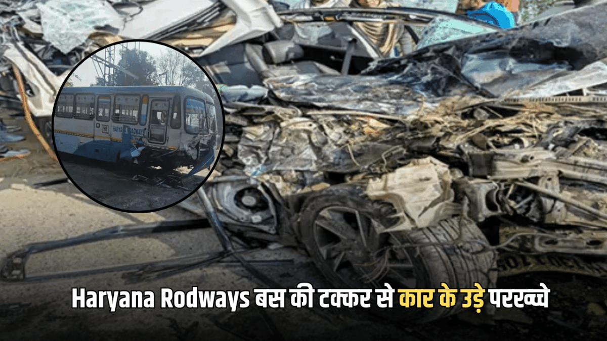 Haryana Rodways बस की टक्कर से कार के उड़े परख्च्चे ,परिवार के इकलौता सहारे की मौत
