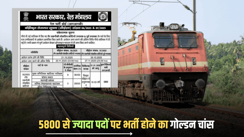 Posted inEducation News (एजुकेशन समाचार) RRB Vacancy 2025: रेलवे में 5800 से ज्यादा पदों पर भर्ती होने का गोल्डन चांस, आज से शरू हुए आवेदन, देखें अन्य जरूरी डिटेल्स by Anil Choudhary22 अक्टूबर 202522 अक्टूबर 2025
