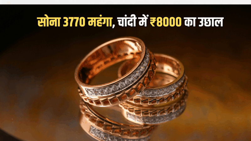Aaj Sone Chnadi ka Bhav : सोना 3770 महंगा, चांदी में ₹8000 का उछाल; जानें आज आपके शहर में 10 ग्राम 22K-24K गोल्ड का लेटेस्ट रेट