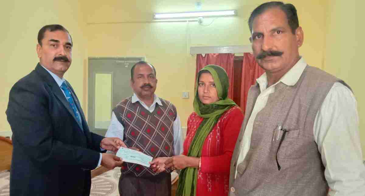 शहीद वीरांगना को सौंपा 45 लाख रुपए का चेक