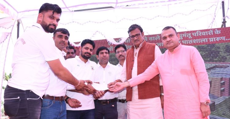 डॉ निर्मल गहलोत व उप प्रतिपक्ष नेता राजेंद्र राठौड़ व भामाशाहों के हाथों रखी पाठशाला की आधारशिला