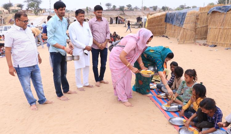 विवाह के उपलक्ष में आपणी पाठशाला के बच्चों को खिलाया खाना