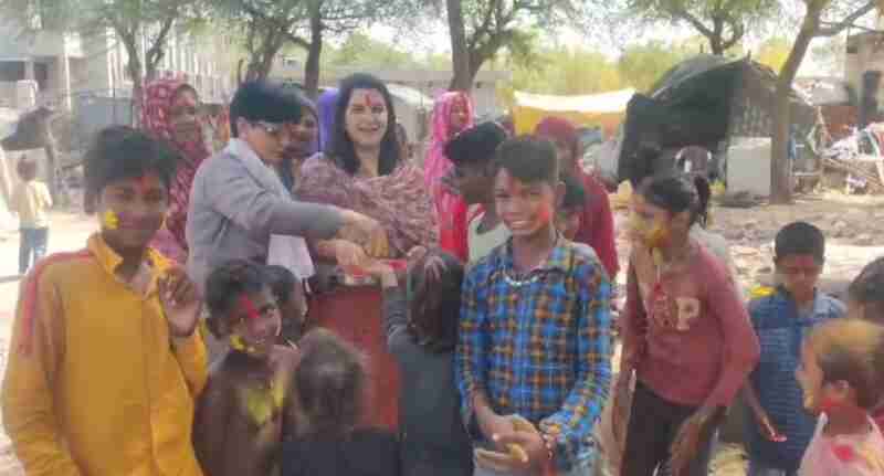 झुग्गी झोपड़ी के लोगो के साथ मनाई होली