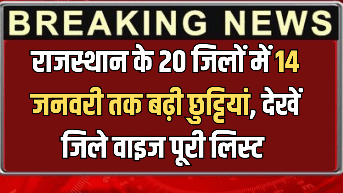 Rajasthan School Holiday Update : राजस्थान के स्कूलों में एक बार फिर शीतकालीन अवकाश को बढ़ाया गया है। बता दे कि प्रदेश में कड़ाके कि ठंढ से कंपकंपी छुट्टी हुई है। बच्चों के स्वास्थ्य को ध्यान में रखते हुए अब राजस्थान के जयपुर सीकर समेत 20 जिलों में अवकाश घोषित कर दिया गया है। जानकारी के लिए बता दे कि राजस्थान में आज शीतकालीन अवकाश खत्म होने वाला था। आज 6 जनवरी से स्कुल खुलने थे लेकिन अब प्रदेश के 20 जिलों जिला कलेक्टर द्वारा अवकाश घोषित किया है। जारी हुए आदेश में अलग अलग जिलों में अलग अलग तारीखों को अवकाश रहने वाले है।