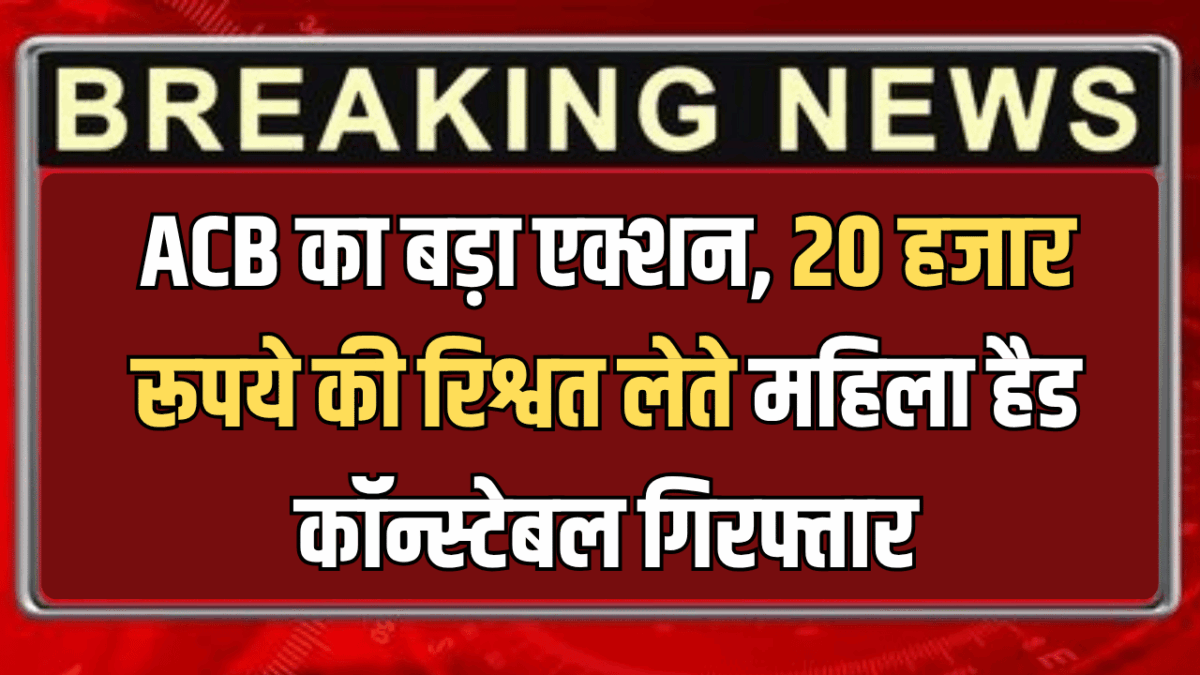 Rajasthan ACB Action : ए.सी.बी. मुख्यालय के निर्देश पर ए.सी.बी. चौकी झुंझुनूं इकाई द्वारा आज कार्यवाही करते हुये आरोपिया संतोष हैड कानि० न० 2549, पुलिस थाना बुहाना जिला झुंझुनूं को 20,000/- रूपये रिश्वत राशि लेते हुये पकड़ा है।