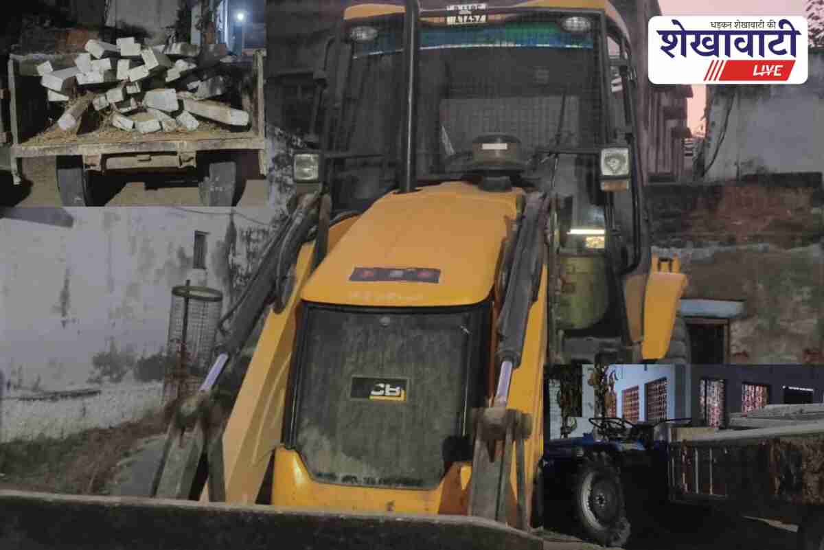 चिड़ावा पुलिस ने एक JCB मशीन, एक ट्रैक्टर-ट्रॉली, 40 सीमेंट पिलर, तीन बंडल कंटीले तार और एक सादा तार का बंडल जब्त किया। मकान गिराने के बाद JCB और ट्रैक्टर को सूरजगढ़ निवासी पुनाराम ने भागाने की कोशिश की, जिसे पुलिस ने कब्जे में ले लिया।