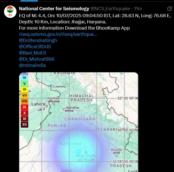 हरियाणा के झज्जर में केंद्र, झुंझुनूं सहित कई इलाकों में महसूस हुए झटके