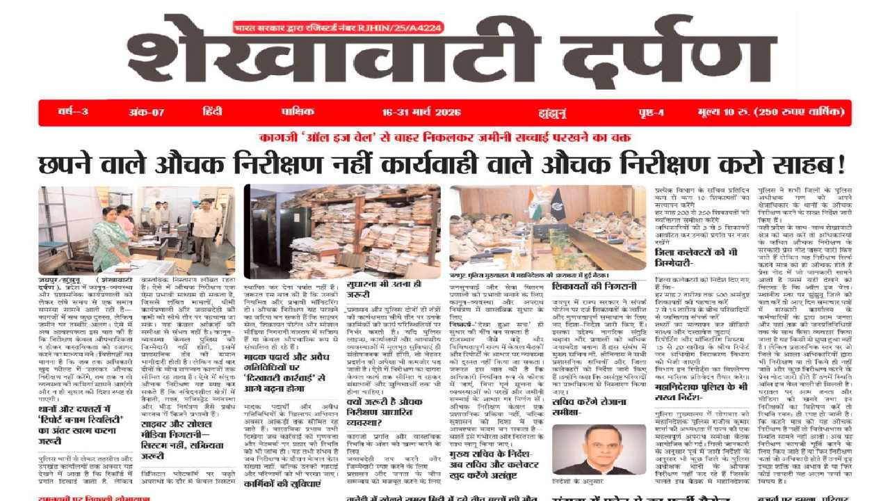 झुंझुनू जिला कलेक्टर ग्राउंड पर उतर कर थानों के भी हालत जानने को निकले यह एक अच्छी शुरुआत है लेकिन आपकी जानकारी के लिए बता दें कि हमने शेखावाटी लाइव और शेखावाटी दर्पण हमारे समाचार पत्र में प्रमुखता से इस मामले को उठाया था और इस पूरे मामले का मुख्य बिंदु था वह यह की “छपने वाले औचक निरीक्षण नहीं कार्यवाही वाले औचक निरिक्षण करो साहब” और एक विस्तृत रिपोर्ट प्रशासन और पुलिस प्रशासन से जुड़ी हुई हमने पेश की थी।