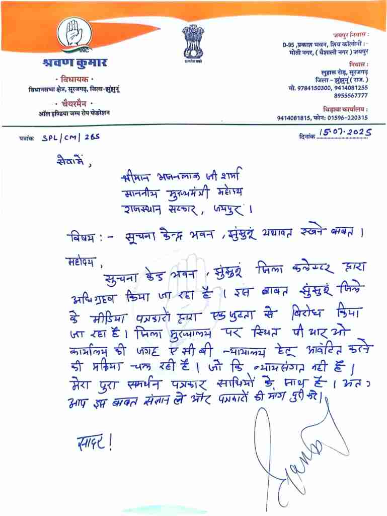 झुंझुनूं, झुंझुनूं में सूचना केंद्र भवन को लेकर चल रहे पत्रकारों के आंदोलन को अब राजनीतिक समर्थन भी मिलने लगा है।