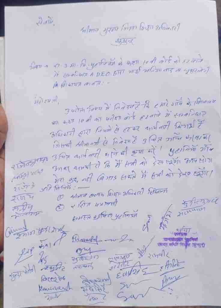 ज्ञापन की एक प्रति ब्लॉक शिक्षा अधिकारी, सिंघाना को भी दिए जाने की जानकारी दी गई है।
