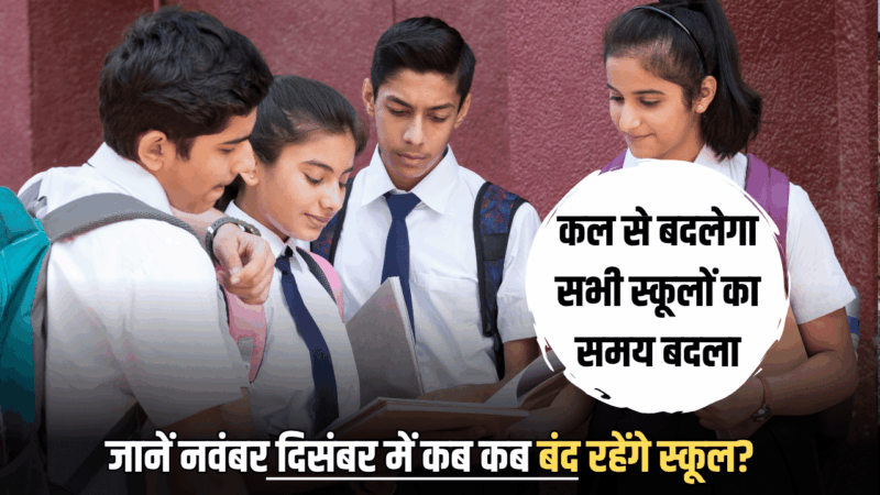 Posted inताजा खबर School Update : छात्रों को राहत, कल से बदलेगा सभी स्कूलों का समय बदला, जानें नवंबर दिसंबर में कब कब बंद रहेंगे स्कूल? by Anil Choudhary14 नवम्बर 202514 नवम्बर 2025