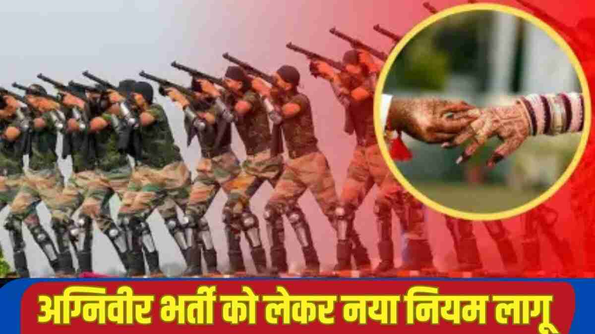 सेना के नए नियमों के अनुसार 4 साल के कार्यकाल के दौरान कोई भी अग्नि वीर शादी नहीं कर सकता है। अगर परमानेंट अग्नि वीर बनना है तो रिटायरमेंट के तुरंत बाद आपको शादी नहीं करनी है। स्थाई सैनिक के लिए आवेदन की प्रक्रिया पूरी नहीं हो जाती और परिणाम घोषित नहीं हो जाते तब तक उन्हें अनमैरिड रहना होगा।
