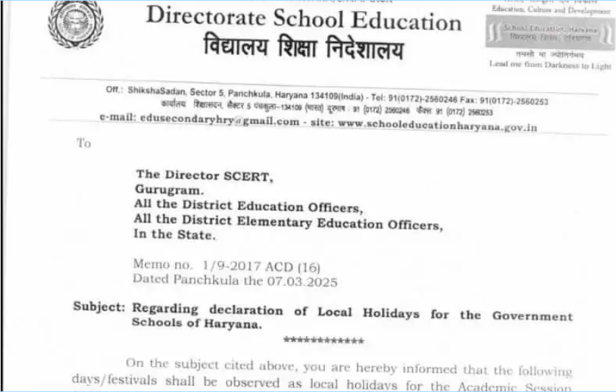 पाठकों को बता दें कि हरियाणा सरकार द्वारा गुरु तेग बहादुर शहीदी दिवस के अवसर पर अवकाश (holiday in Haryana) की घोषणा लोकल छुट्टी के तहत की गई है। प्रदेश सरकार द्वारा राज्य में 18 अप्रैल को गुड फ्राइडे के अवसर पर, 12 में को बुद्ध पूर्णिमा के अवसर पर, 10 अक्टूबर को करवा चौथ के अवसर पर और 25 नवंबर को गुरु तेग बहादुर शहीदी दिवस के अवसर पर लोकल छुट्टी (local holiday) निर्धारित की गई हैं।