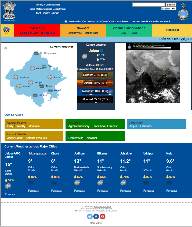 सबसे ठंडा दिन सिरोही में रहा, जहां का अधिकतम तापमान 19.5 डिग्री सेल्सियस दर्ज हुआ।