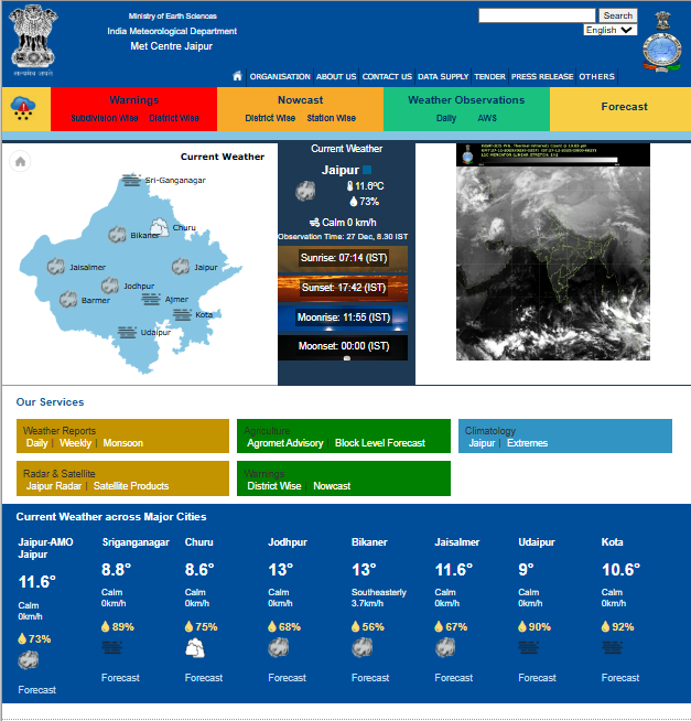 मौसम विभाग के अनुसार पिछले 24 घंटों के दौरान मौसम शुष्क रहा और इस दौरान उदयपुर संभाग में कहीं-कहीं कोहरा दर्ज किया गया. अधिकतर शहरों में न्यूनतम तापमान 10 डिग्री सेल्सियस से नीचे रहा. यह सीकर के फतेहपुर में 4.6 डिग्री सेल्सियस, दौसा में 5 डिग्री, तक दर्ज हुआ है