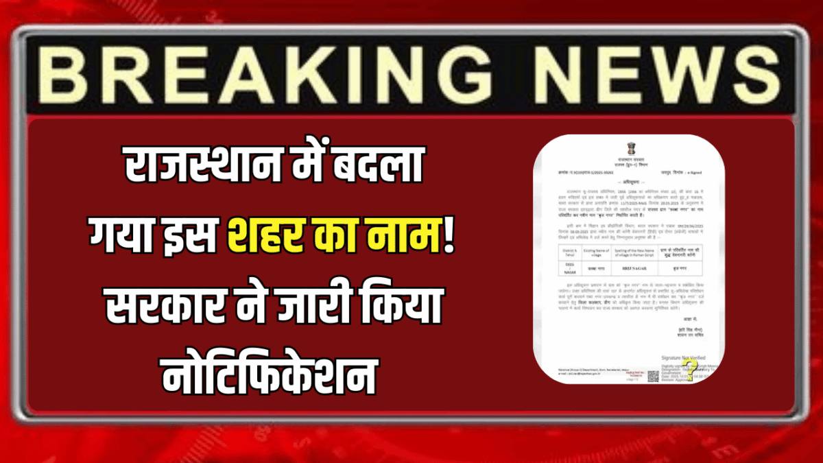 Rajsthan City Name Changed : राजस्थान में बदला गया इस शहर का नाम! अब कहलायेगा ‘बृज नगर’; सरकार ने जारी किया नोटिफिकेशन