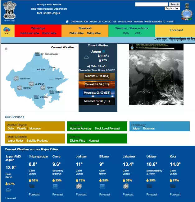 IMD जयपुर ने राज्य में 21 जनवरी रात से एक सक्रिय पश्चिमी विक्षोभ के एक्टिव होने और उससे बादल छाने, आंधी चलने, बिजली चमकने के साथ कई स्थानों पर बारिश होने की संभावना जताई है।