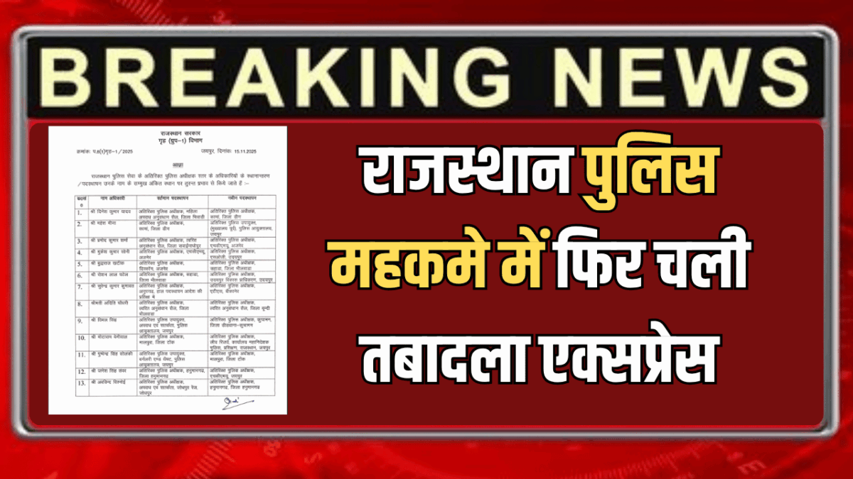 Rajasthan Police Transfer : राजस्थान पुलिस महकमे में फिर चली तबादला एक्सप्रेस, आज 142 ASP के ट्रांसफर, कई को अतिरिक्त प्रभार, देखें पूरी लिस्ट