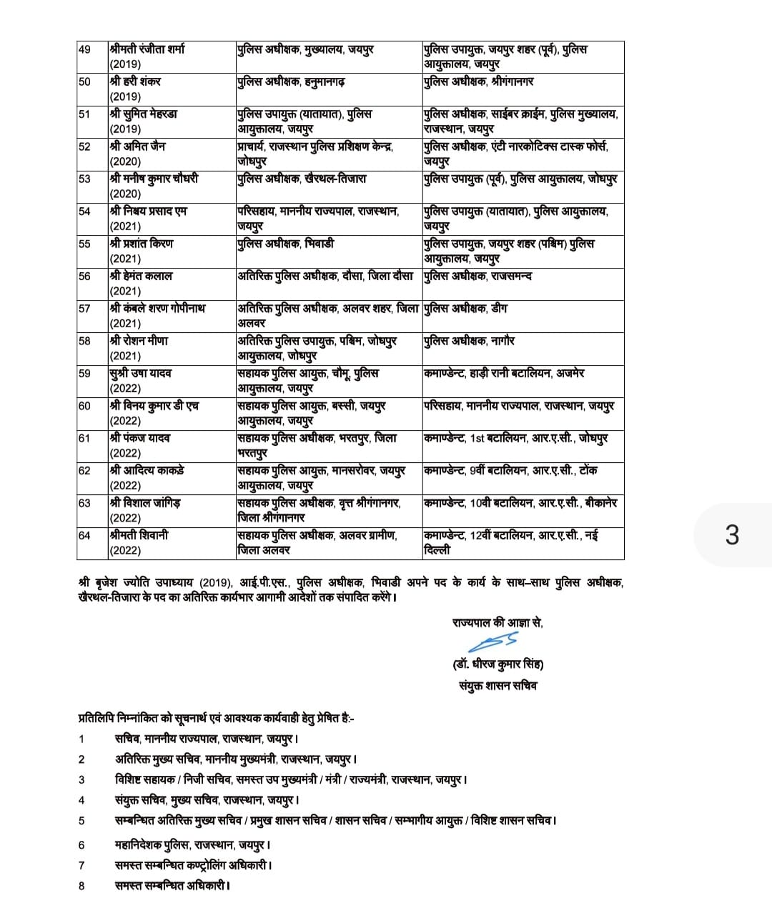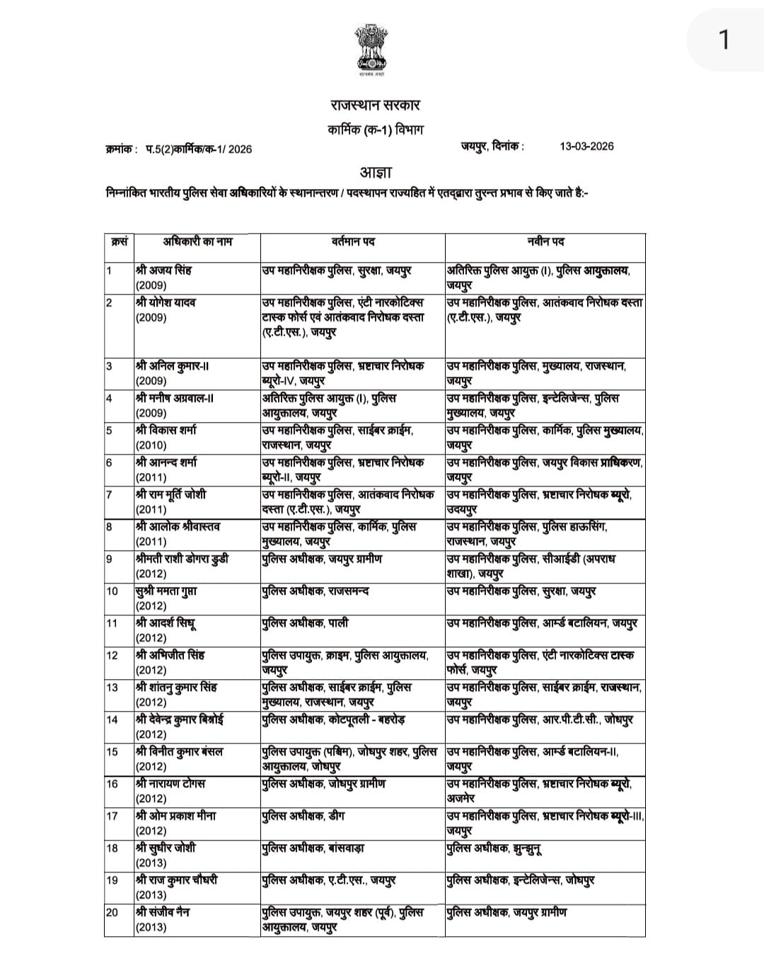 ममता गुप्ता को जयपुर भेजा गया, डोगरा का भी हुआ तबादला