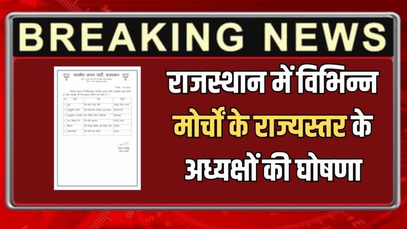 Posted inRajasthan News (राजस्थान समाचार) Rajasthan : राजस्थान में विभिन्न मोर्चों के राज्यस्तर के अध्यक्षों की घोषणा, देखें पूरी लिस्ट by Anil Choudhary29 दिसम्बर 202529 दिसम्बर 2025
