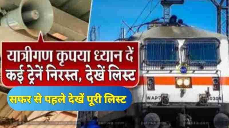 Posted inव्यवसाय Cancelled Train List: रेलयात्री ध्यान दें! अगले दो हफ्ते के लिए रेलवे नें इन ट्रेनों को किया कैंसिल, सफर से पहले देखें पूरी लिस्ट by Sobha Mishra6 नवम्बर 20256 नवम्बर 2025