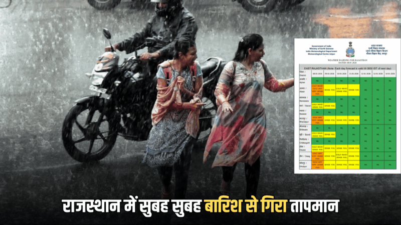Posted inRajasthan News (राजस्थान समाचार) राजस्थान का मौसम: राजस्थान में सुबह सुबह बारिश से गिरा तापमान, बर्फीली हवाओं के साथ शीतलहर का अलर्ट, 25 जिलों में आज स्कूलों की छुट्टी by Anil Choudhary9 जनवरी 20269 जनवरी 2026