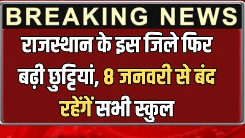 Rajasthan School Holiday : राजस्थान के इस जिले फिर बढ़ी छुट्टियां, 8 जनवरी से बंद रहेंगें सभी स्कुल