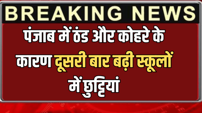 Posted inEducation News (एजुकेशन समाचार) Punjab School Holiday : पंजाब में ठंड और कोहरे के कारण दूसरी बार बढ़ी स्कूलों में छुट्टियां, सभी सरकारी और प्राइवेट स्कूलों के लिए आदेश जारी by Anil Choudhary7 जनवरी 20267 जनवरी 2026