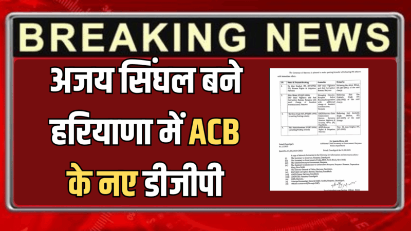 Posted inताजा खबर haryana IPS Transfer : अजय सिंघल बने हरियाणा में ACB के नए डीजीपी, 4 IPS अफसरों की जिम्मेदारी बदली; इनका हुआ प्रमोशन by Anil Choudhary2 दिसम्बर 20252 दिसम्बर 2025