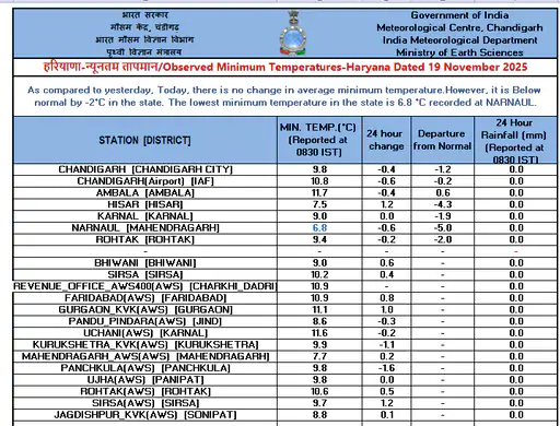 बता दे कि चौधरी चरण सिंह हरियाणा कृषि विश्वविद्यालय हिसार के मौसम विज्ञान विभाग के विभागाध्यक्ष डॉ. मदन खीचड़ ने बताया कि राज्य में मौसम आमतौर पर 23 नवंबर तक खुश्क व परिवर्तनशील बना रह सकता है। इस दौरान पश्चिमी विक्षोभ के आंशिक प्रभाव से बीच-बीच में आंशिक बादलवाई रहने की भी संभावना है।