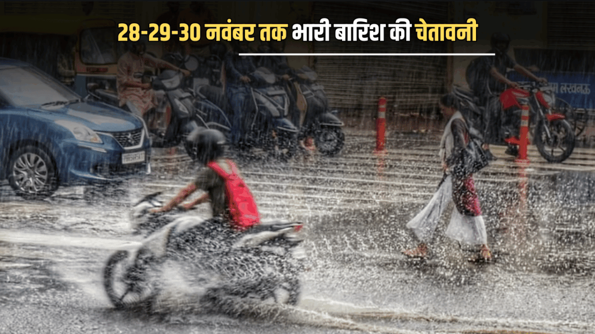 IMD ने 28, 29 और 30 नवंबर को कई राज्यों में भारी बारिश का अलर्ट जारी किया है। राजस्थान, केरल, तमिलनाडु, आंध्रप्रदेश, कर्नाटक, तेलंगाना और अंडमान-निकोबार सहित कई इलाकों में तेज बारिश, बिजली गिरने और तेज हवा की संभावना है। नागरिकों से सावधानी बरतने की अपील की गई है।Heavy Rain Alert